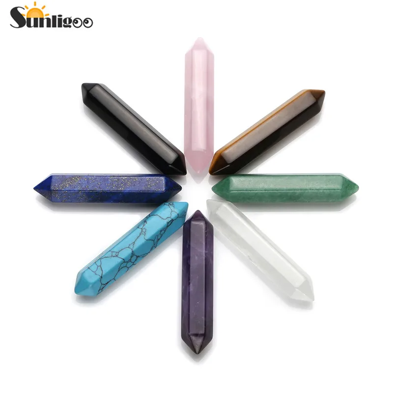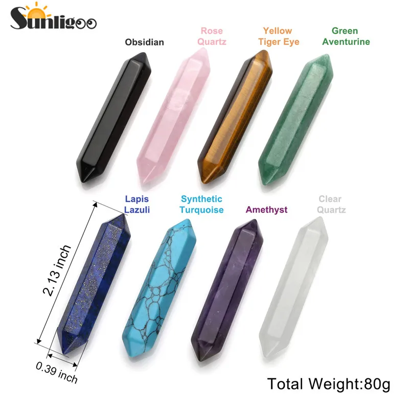 Sunligoo New Chakra Crystal Quartz Gemstones Healing Wands Set 6 Facet Double Point Tumble Stones M BQE